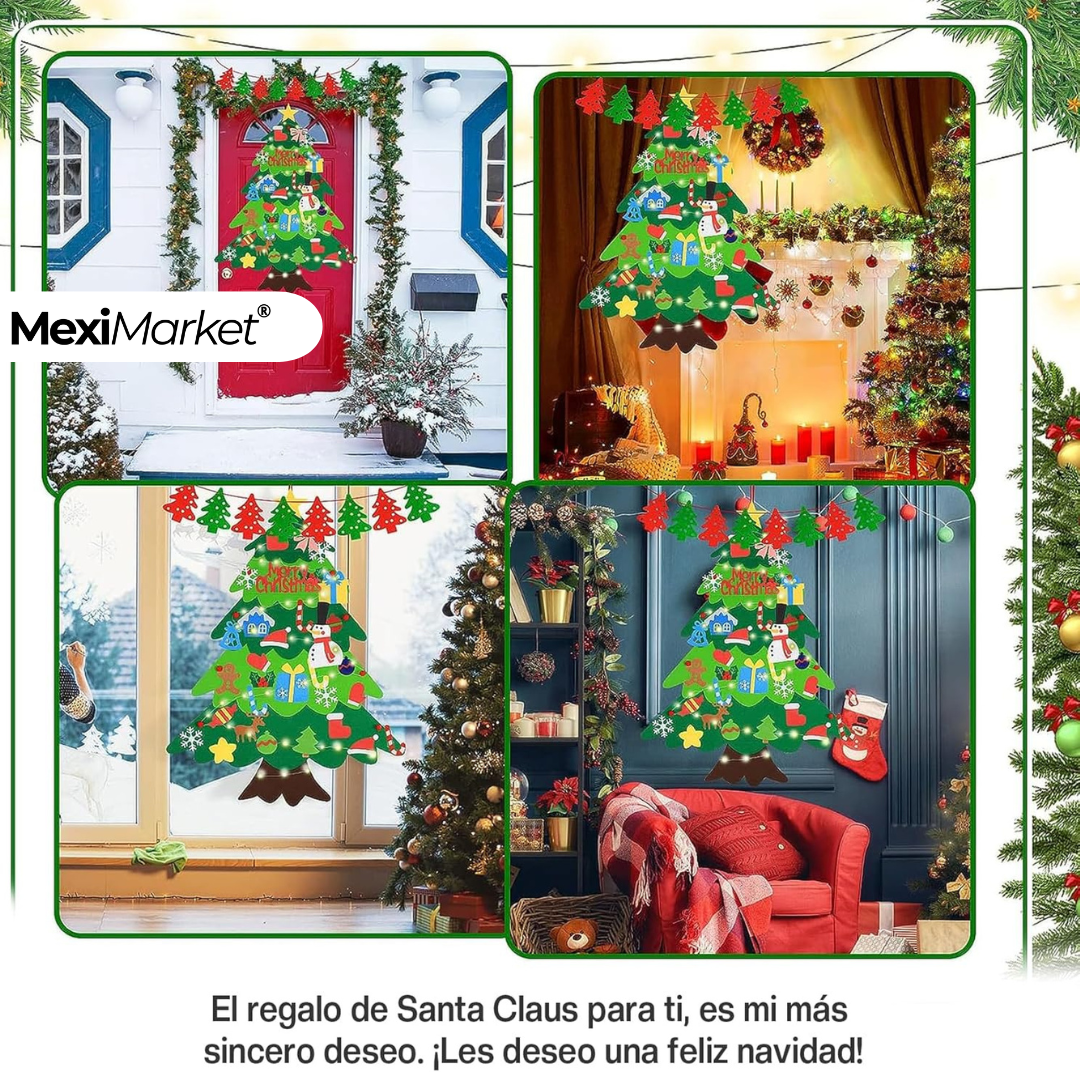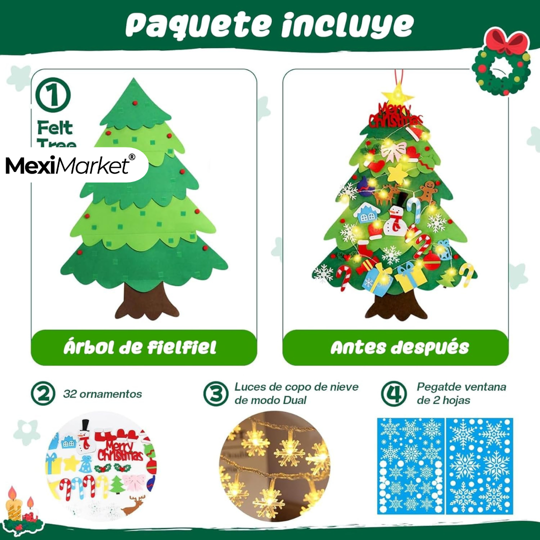 Incluye adornos de fieltro con velcro, fáciles de colocar y quitar para que los niños decoren a su gusto una y otra vez.