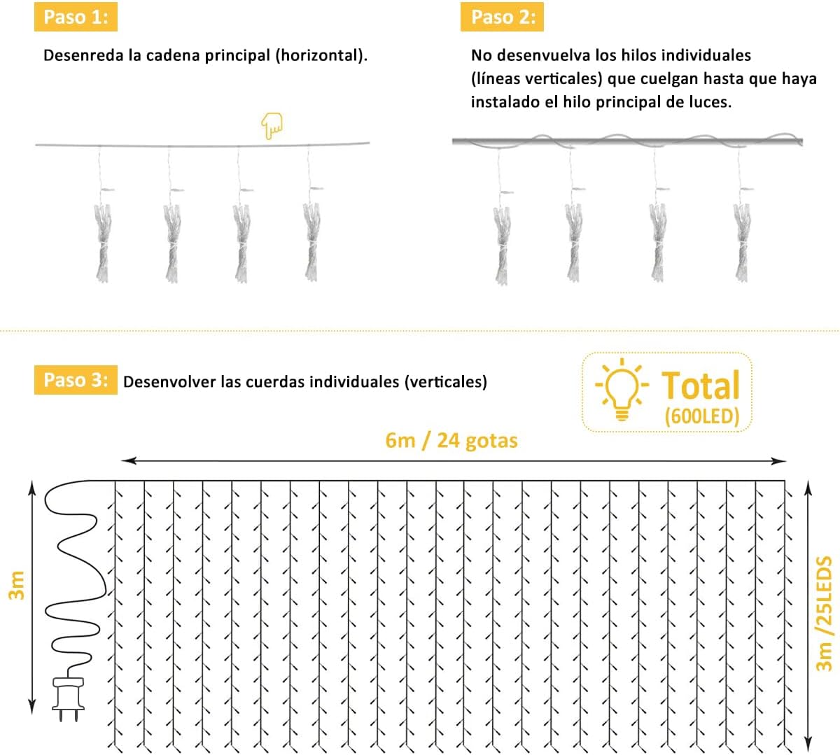 💡SERIE DE LUCES LED TIPO CORTINA 3X3 METROS 🎁 (300 FOCOS - 8 MODOS DE ILUMINACION)