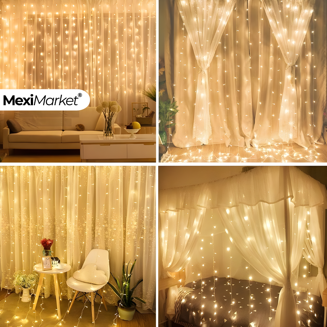 Transforma cualquier rincón de tu hogar en un ambiente acogedor y lleno de encanto con nuestra cortina de luces LED. Perfecta para decorar habitaciones, salas, eventos especiales o celebraciones, estas luces son el toque de magia que necesitas.