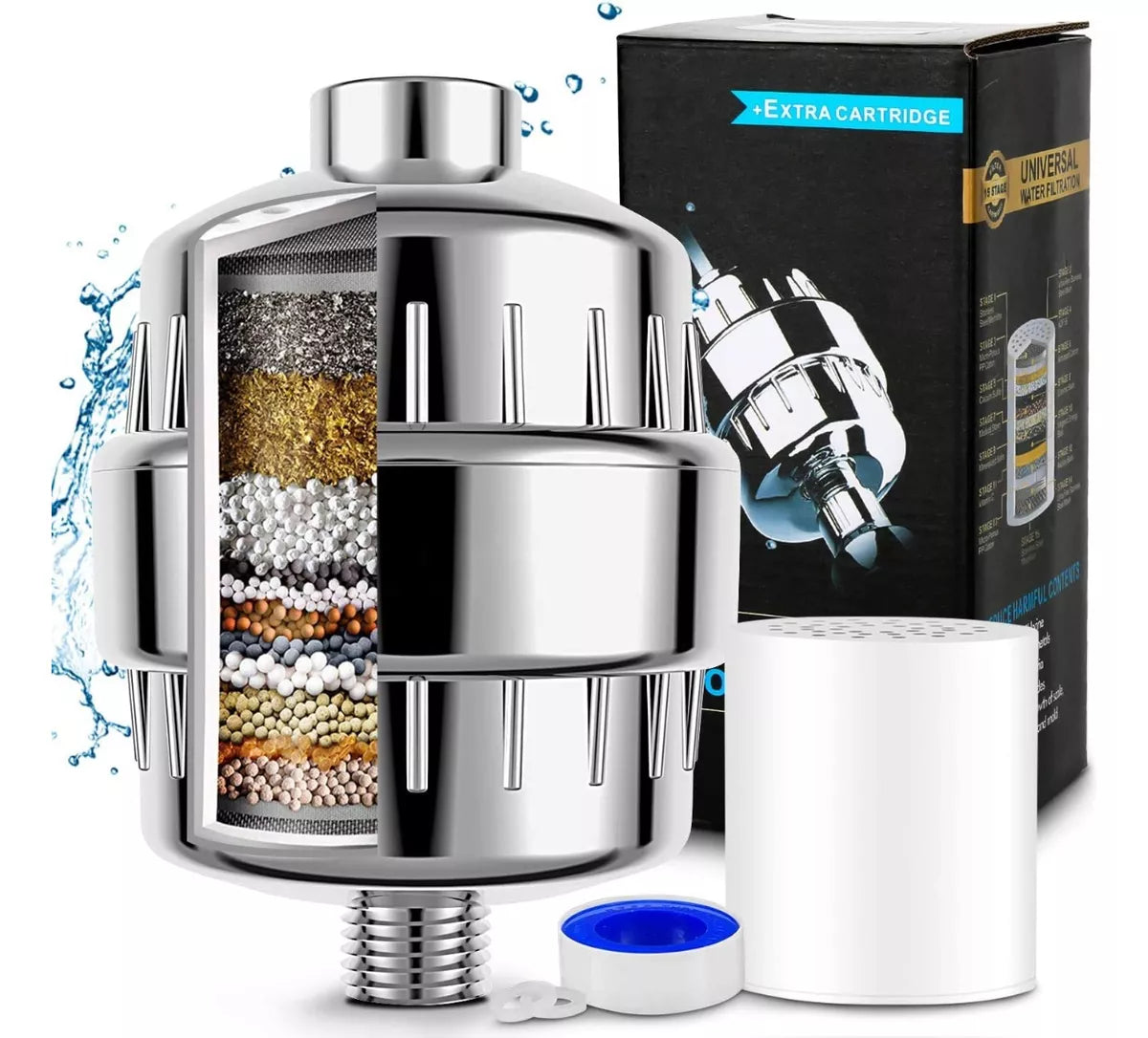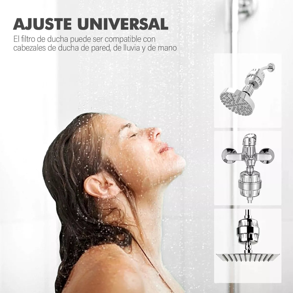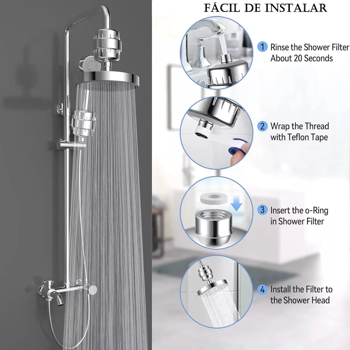 Filtra impurezas para proporcionarte un agua más limpia y pura, en comparación con los filtros de 10 capas u otros filtros de ducha, nuestro potente y mejorado sistema de filtración de 15 capas elimina eficazmente el cloro residual, los olores y los depósitos de agua e inhibe el crecimiento de incrustaciones y algas
