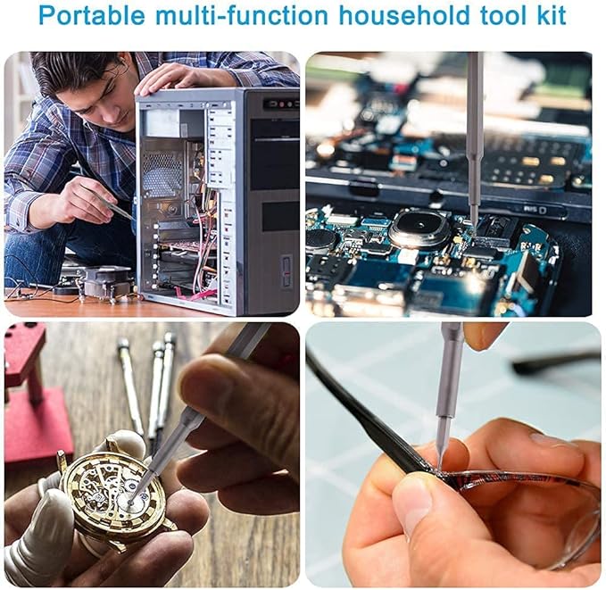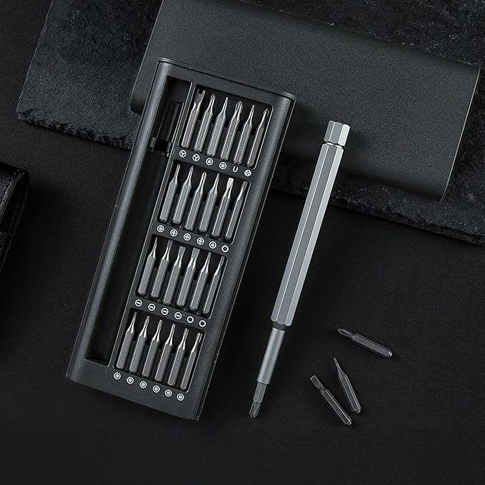 Este completo kit incluye 24 piezas de precisión, cada una adecuada para diferentes tipos de tornillos y proyectos. Desde juguetes hasta dispositivos electrónicos, tus hijos tendrán todo lo que necesitan para explorar y aprender.