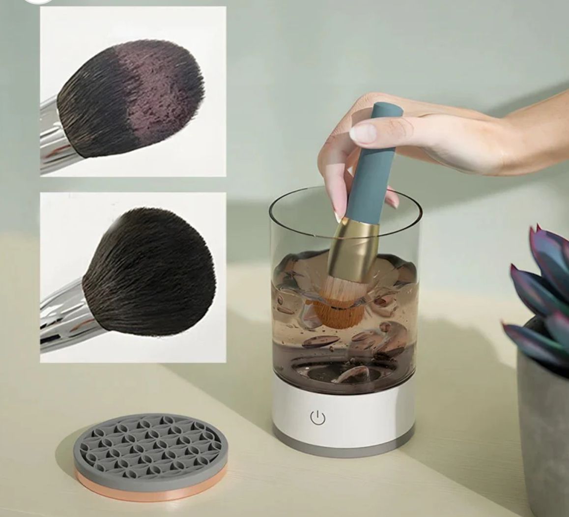 ¡Mantén tus brochas de maquillaje limpias y organizadas con nuestro Limpiador y Organizador de Brochas Eléctrico 2 en 1!
