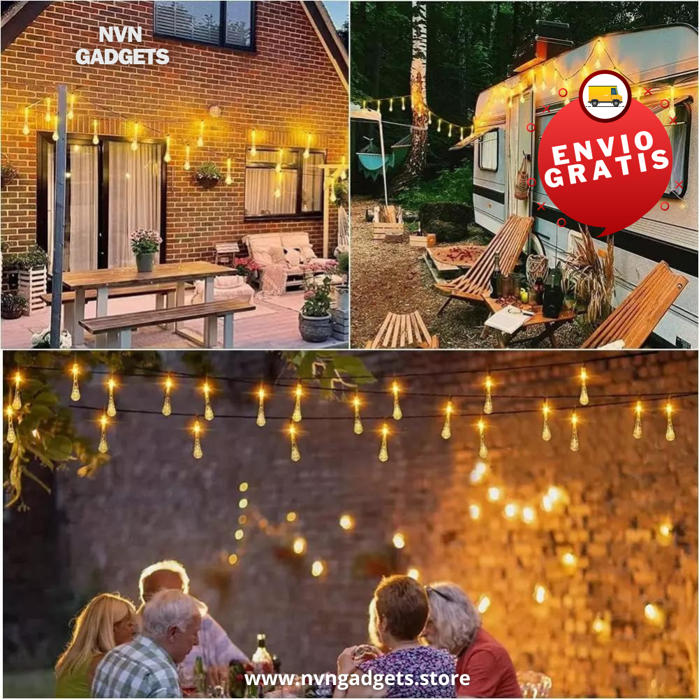 LUZ EN FORMA DE GOTA 💧(60 Focos 12 METROS - 8 MODOS DE ILUMINACION)