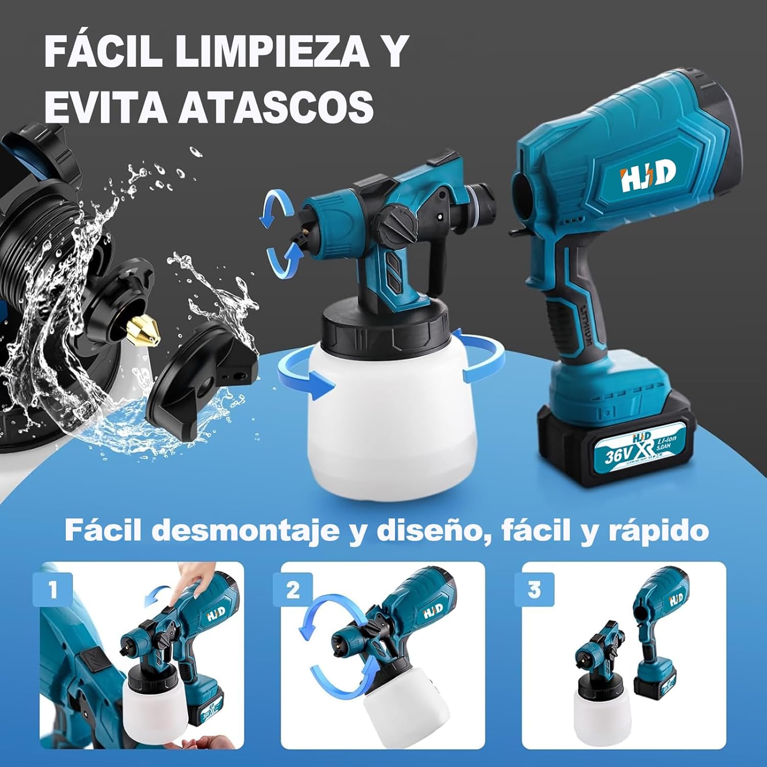 Olvídate de estar atado a enchufes. La batería recargable te proporciona largas horas de funcionamiento continuo, permitiéndote pintar grandes áreas sin interrupciones. Ideal para proyectos de mayor envergadura donde la movilidad es esencial.