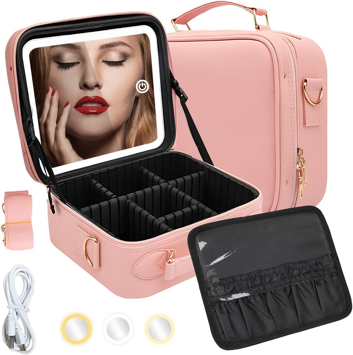 Incorpora un espejo grande con iluminación LED ajustable, proporcionando la luz perfecta para aplicar tu maquillaje con precisión, sin importar dónde estés. Ya no tendrás que preocuparte por la falta de luz natural, ¡la iluminación perfecta estará siempre contigo!