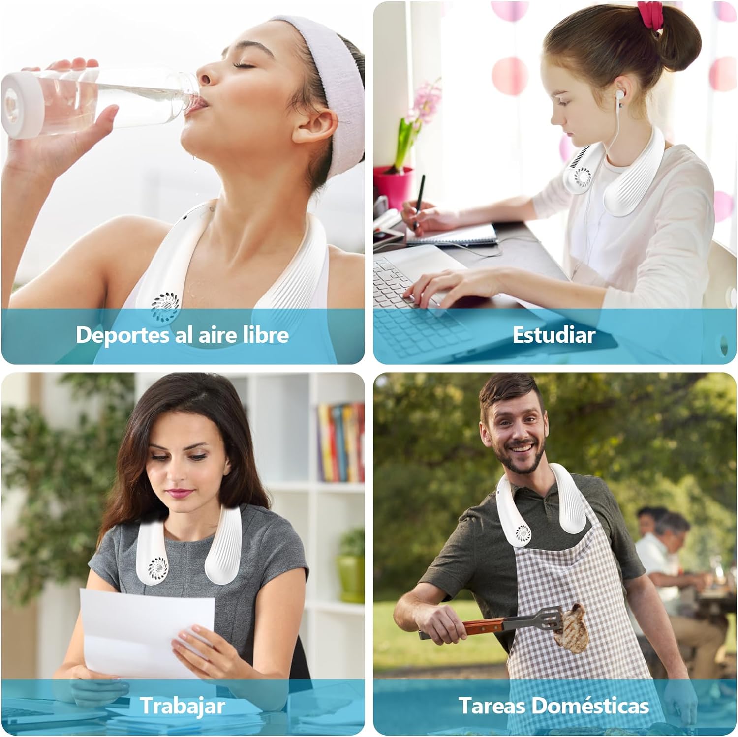 Este ventilador está diseñado para adaptarse cómodamente alrededor de tu cuello, permitiéndote disfrutar de una brisa refrescante sin esfuerzo mientras mantienes tus manos libres para otras actividades.